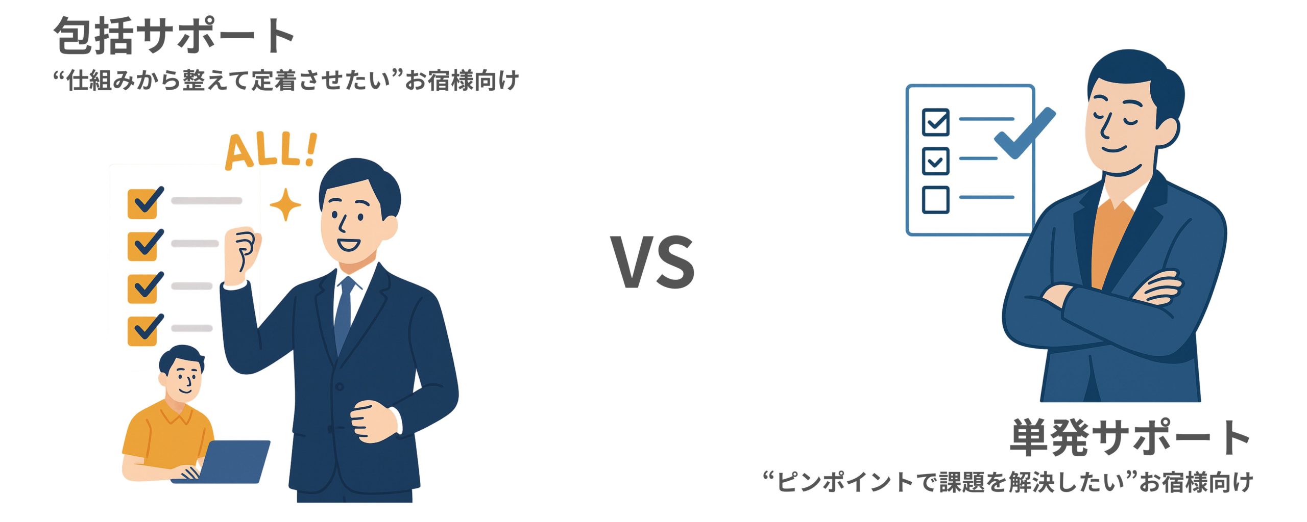 ※ 現地訪問の有無や訪問頻度、スタッフ数、既存体制の状況によりお見積もりいたします。